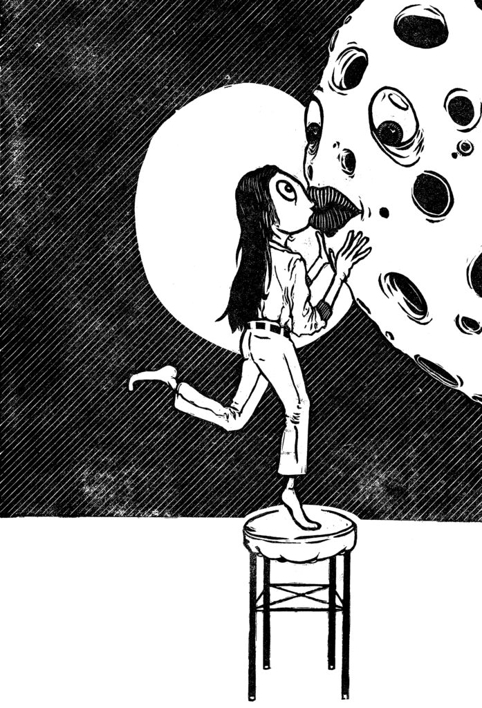 we naar huis reden na een slopende avond zoveel in de studio… het volle maan was… Wybe zei: ‘kijk… daar heb je Ramon die op een motor rondjes rond de maan rijdt’ Denz zei dat we gek waren